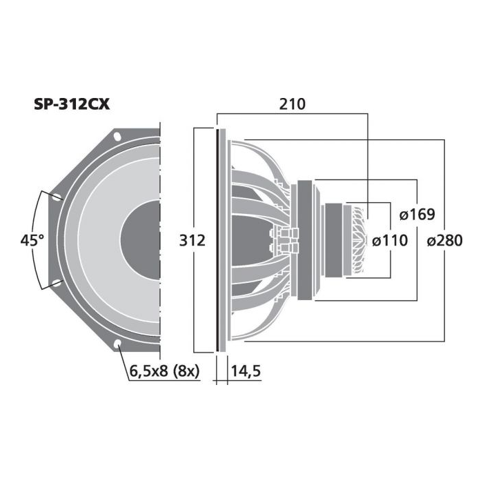 - 30 cm (12") PA basový reproduktor vysokej schopnosti napájania a vysokej účinnosti