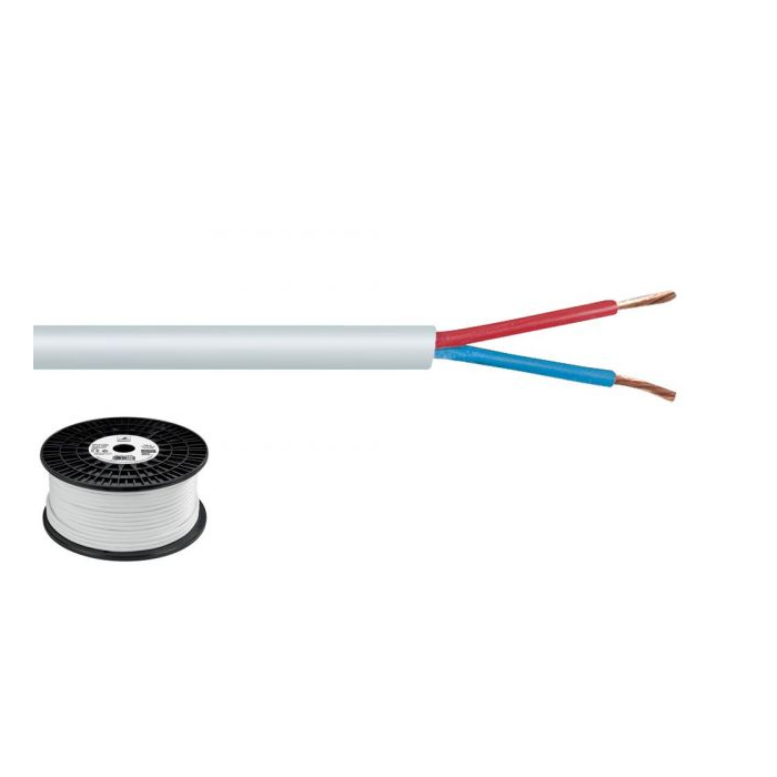 Intended use: speakers, stage, 100 V PA Length: 100 m Colour: white Internal conductor: 2 x 1.5 mm2 Material: OFC No. of cores: 2 Cable diameter: Ø 7.4 mm Metre marking: yes Packaging: reel Weight: 9.36 kg