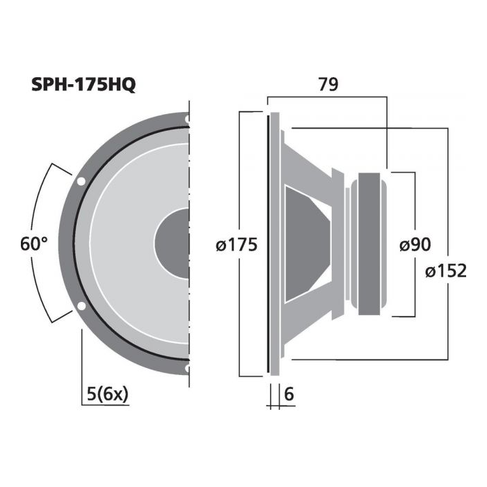 - 175 mm (6 3/4") stredobasový reproduktor