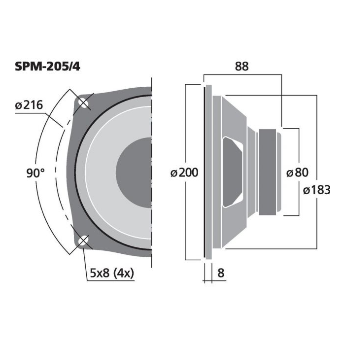 Hi-fi Hi-fi stredobasové reproduktory, 70 W, 8 Ω (/8) a 4 Ω (/4)