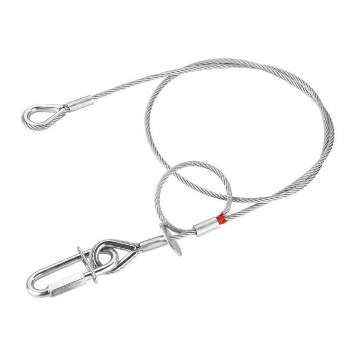 Description: safety rope Features: quick link for safety ropes Material: 4 mm Max. load/centr. weight concentr.: 40 kg Length: 100 cm Weight: 152 g Special feature: certified according to BGV-C1