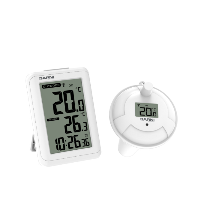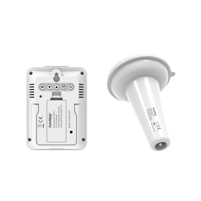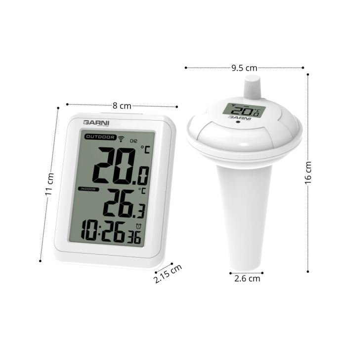 Digitální teploměr s bazénovým čidlem GARNI 245P pro měření teploty vody zobrazuje také teplotu na místě hlavní jednotky a čas. Bezdrátové bazénové čidlo GARNI 065P je kompatibilní s meteorologickými stanicemi GARNI 612 Precise, GARNI 615W Precise, GARNI 615B Precise, GARNI 618W Precise a GARNI 618B Precise.