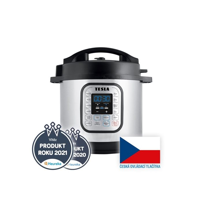 Multifunkční elektrický tlakový hrnec 10v1, dotyková ovládací tlačítka v češtině, kapacita nádoby 6l, vnitřní hrnec z nerez oceli, odložený start, 30 naprogramovaných hodnot, vysoký/nízký tlak, LCD displej, odnímatelný napájecí kabel, příkon 1 000W/230V
