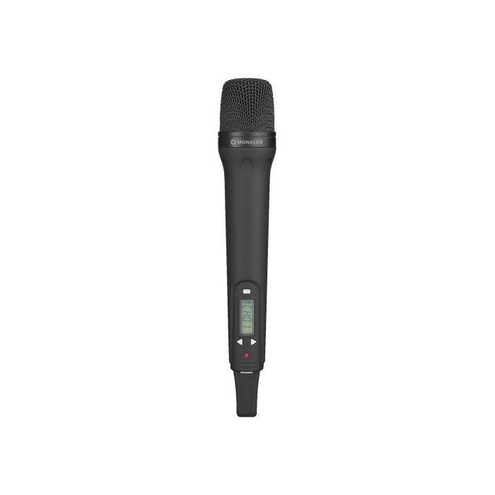 Description: hand-held microphone transmitter Transmission method: wireless Polar pattern: cardioid System: dynamic Carrier frequency range: 863.1-864.9 MHz Transmitting power: 10 mW Power supply: 2 x 1.5 V batt. AA size Audio frequency range: 70-16,000 Hz Admiss. ambient temp.: 0-40 °C Dimensions: Ø 46 mm x 265 mm Weight: 250 g Packaging dimensions (W x H x L): 0.06 x 0.055 x 0.285 m Gross weight: 0.315 kg Net weight: 0.255 kg