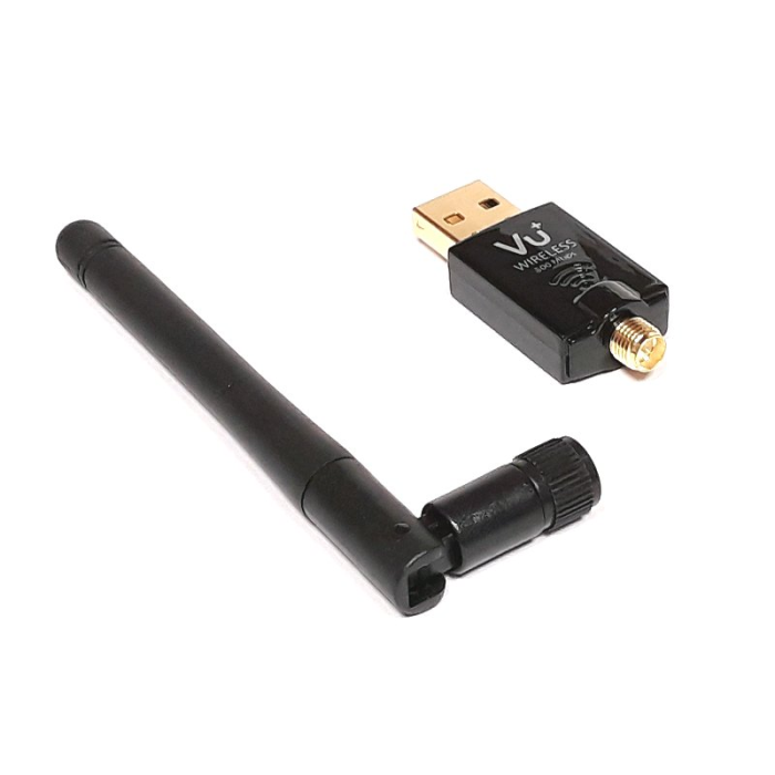 USB Wi-Fi duální 2,4 / 5 GHz / 600 Mbps adaptér pro přijímače VU+. Tento modul stačí pouze zapojit do USB portu přijímače, vložit nastavení vaší stávající sítě a jste připojeni k síti. Dá se použít také k notebookům i klasickým počítačovým sestavám.