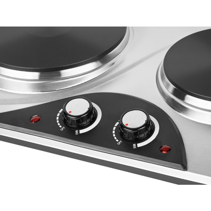 Do kempu nebo do zahradní kuchyně se skvěle hodí tento pohodlný a kompaktní přenosný dvouplotýnkový elektrický vařič s výkonem 2500 W. Dvě litinové topné plotýnky v kombinaci s knoflíky, které umožňují nastavení teploty až do 650 °C, neudělají s přípravou večeře žádný problém.