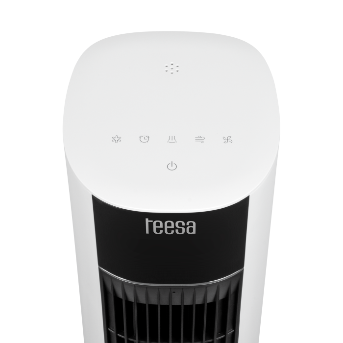Rotační sloupový ventilátor Teesa má 3litrovou nádrž na vodu, kterou lze snadno vyjmout, doplnit a vyčistit. Účinnost zvyšují dvě chladicí vložky. Vodou chlazené sloupové ventilátory jsou výbornou volbou pro horké dny a noci.