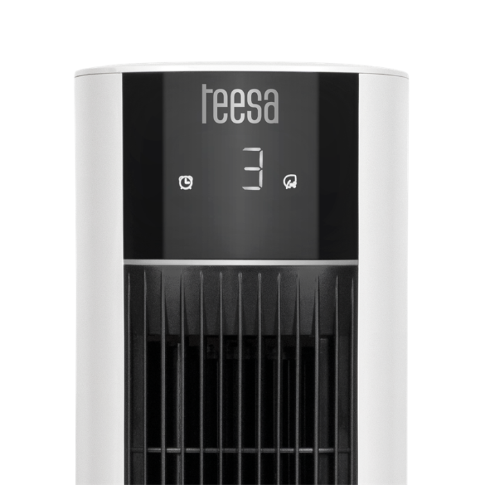 Ventilátor Teesa je vybaven dotykovým ovládacím panelem a LED displejem. Intuitivní ovládání vám umožní změnit nastavení během mrknutí oka a přizpůsobit zařízení vašim potřebám. Díky přehlednému displeji můžete ovládat provozní režim a dobu provozu.