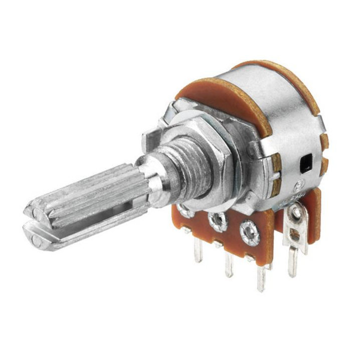 Resistance: 50 kΩ Characteristic: log. Power rating: 0.1 W Insulating resistance: < 100 MΩ/ DC 500 V Test voltage: ˜ 500 V/1 min. Tracking error: ±3 dB, 0/-40 dB Rotation angle: 300° ±5°