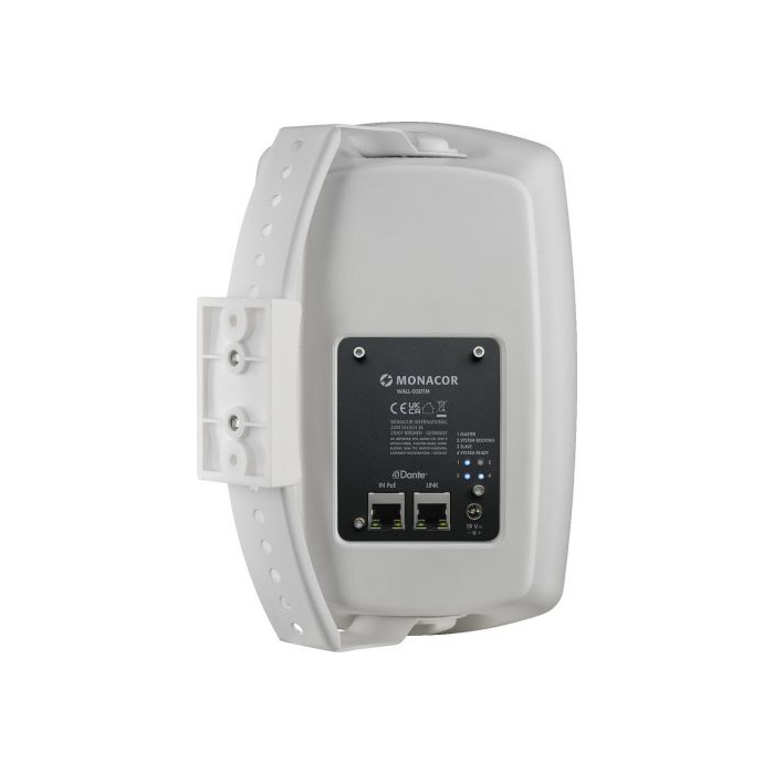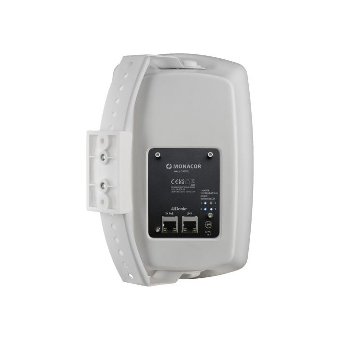 The wall speaker WALL-05DTM/WS features an integrated 1-channel Dante® module. This Dante® speaker is particularly suitable for commercial applications in the professional field. It can be used for applications where several audio channels have to be transmitted over great distances and to different areas or locations. The fields of application include schools, office buildings, fitness centres, shops and restaurants.