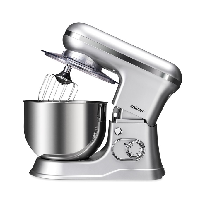 Výkon: 1200 W · Planetární míchání, Kapacita: 5 l a 4,5 l - Nerezová mísa · Plastová mísa · 6stupňová regulace rychlosti · Funkce PULSE · Nerezová mísa · Plastová mísa · Gumové nožičky zajišťují stabilní provoz, Příslušenství: hnětací hák, Míchací nástavec s pogumovanám zakončením pro lepší efekt