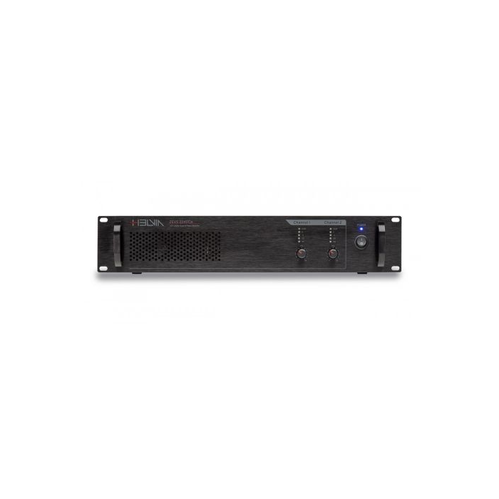 Helvia Zeus CA series is designed for the world of small-medium commercial audio systems, both on 70V or 100V constant voltage lines, and low-impedance lines from 4 to 16 ohm. It offers 1, 2 and 4 channels Class-D amplifiers with 120W, 240W and 350W RMS powers. Each channel is independent and equipped with its own line transformer, therefore it is possible to choose between 70/100V or 4-16 ohm low-impedance for each of them, offering maximum versatility according to the specific needs of each zone. Each channel is equipped, in addition to volume, Led VU-meter and clip indicator, with gain adjustment on the rear panel. There is also an HPF filter with a cut-off frequency at 400Hz. Both inputs and outputs are balanced with XLR connectors; all power outs are with Phoenix (Europlug) connection. The versions with 1 and 2 channels are also equipped with DC 24V auxiliary power input for any emergency purposes. Helvia paid high attention to safety, reliability and duration over time of these amplifiers. Each channel is equipped with muting system at power on, signal limiter, thermal protection and current limitation. The cooling system with fan speed controlled by internal temperature, is also reinforced thanks to the 19” 2U Rack standard size that increases the thermal dissipation. The quality is not only based on the accurate selection of active and passive components, but also on the quality of raw materials used for line transformers, and in the use of digital processing to offer stability, reliability and high-level sound performance.