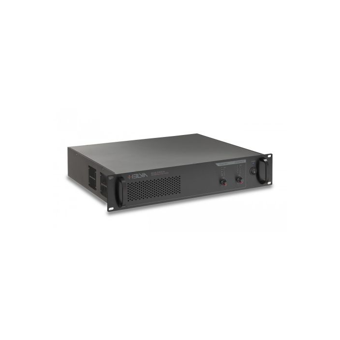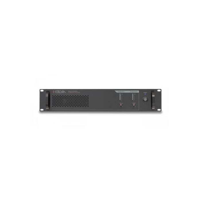 Helvia Zeus CA series is designed for the world of small-medium commercial audio systems, both on 70V or 100V constant voltage lines, and low-impedance lines from 4 to 16 ohm. It offers 1, 2 and 4 channels Class-D amplifiers with 120W, 240W and 350W RMS powers. Each channel is independent and equipped with its own line transformer, therefore it is possible to choose between 70/100V or 4-16 ohm low-impedance for each of them, offering maximum versatility according to the specific needs of each zone. Each channel is equipped, in addition to volume, Led VU-meter and clip indicator, with gain adjustment on the rear panel. There is also an HPF filter with a cut-off frequency at 400Hz. Both inputs and outputs are balanced with XLR connectors; all power outs are with Phoenix (Europlug) connection. The versions with 1 and 2 channels are also equipped with DC 24V auxiliary power input for any emergency purposes. Helvia paid high attention to safety, reliability and duration over time of these amplifiers. Each channel is equipped with muting system at power on, signal limiter, thermal protection and current limitation. The cooling system with fan speed controlled by internal temperature, is also reinforced thanks to the 19” 2U Rack standard size that increases the thermal dissipation. The quality is not only based on the accurate selection of active and passive components, but also on the quality of raw materials used for line transformers, and in the use of digital processing to offer stability, reliability and high-level sound performance.
