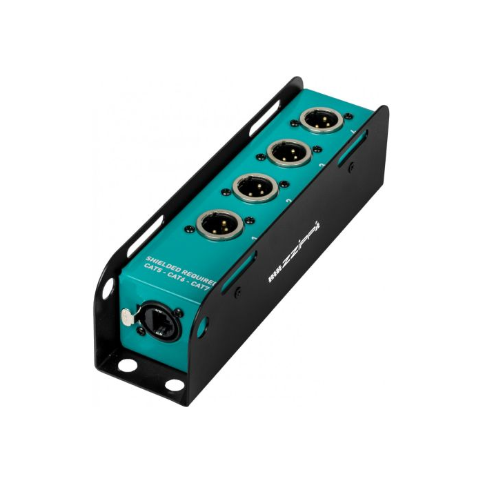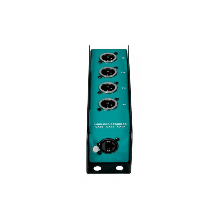 analógový prepojovací box 4-kanálový s 3-pinovými konektormi XLR, navrhnutý pre spoľahlivú distribúciu signálu Audio/DMX. Robustný kovový rám poskytuje vynikajúce elektromagnetické tienenie a mechanickú ochranu, zatiaľ čo vnútorné zapojenie zaisťuje kontinuitu signálu a dlhú životnosť. Kompaktný formát umožňuje prehľadné zapojenie, znižuje neporiadok na pódiu alebo v racku.